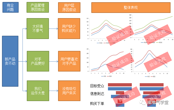 转化完问题后,先宏观上对假设进行检验非常重要,能有效避免无限拆解的错误。如果大方向都不成立,细节更不用看了。还是新产品卖不动的问题,如果要从大方向验证,可以简单如下进行: