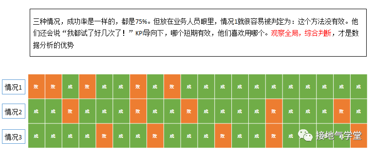 二来,业务人员的经验很容易被短期效应打脸,进而做出错误判断(如下图所示)。业务人员KPI挂帅,容易选择短期见效的,忽视长期效应。这时候就需要数据分析师,沉住气,长期观察,沉淀经验。才能更好指导业务。