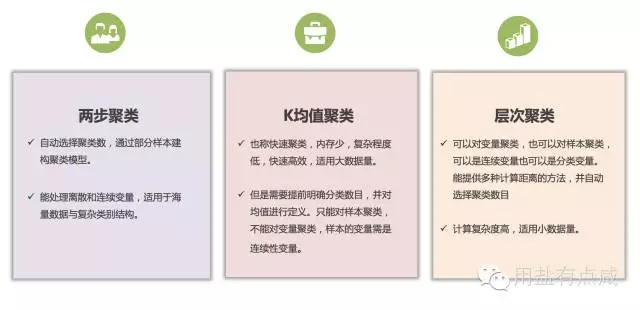 在确定因子之后需要选择合适的聚类方法。不同方法适用的情况不同,常用的是K均值聚类以及层次聚类。