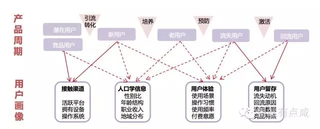 从用户画像的使用情境也可以看出,用户画像适用于各个产品周期:从潜在用户挖掘到新用户引流,再到老用户的培养与流失用户的回流,用户画像都有用武之地。