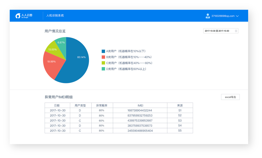 人人云图为IoT、移动互联网、家庭互联网、车联网等用户提供基于行为的用户画像,帮助鉴别用户质量、及时调整运营策略、优化渠道、降低成本。系统前端根据ip、终端、传感器等设备属性初步判定是否作弊,做第一层防护;后端根据用户行为、内容维度数据进行用户质量判定,做第二层防护。核心是根据用户交叉数据,利用其他应用的脱敏数据做交叉验证。人人云图用切片式编程方式把SDK放进移动应用中,基于用户行为建模,三日根据用户需求出不同渠道报表,用户画像准确率在96%以上。