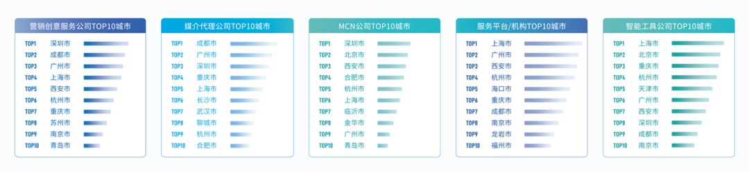 但现在我们发现,二三线城市,甚至三四线城市的营销创意服务产业正在兴起,除了政策的利好之外,就是平台方营销工具的出现,极大地降低了营销创意服务的门槛与成本,释放了供给侧,推动了本地营销服务行业及人才的发展。《创意进化论》中梳理出了一张营销创意产业地域分布图值得大家参考,从图中我们可以发现,临沂、聊城、福州等城市甚至冲入某类营销服务类公司的TOP10。
